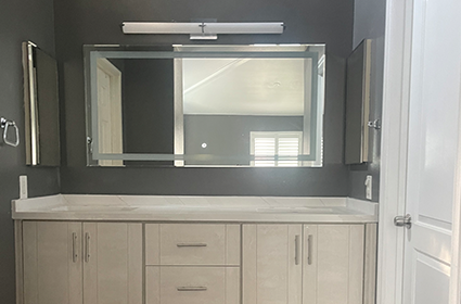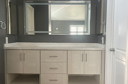 An organized and aesthetically appealing bathroom makes grooming and clean up time effortless. Having a convenient place for all of your toiletries and beauty tools allows you to keep your bathroom neat and attractive, while remaining fully functional. King Cabinets & Closet Organizers can design and install custom cabinetry, vanity, custom shelving and decor to suit any size or style bathroom, creating a room you will be proud to share with family and guests.